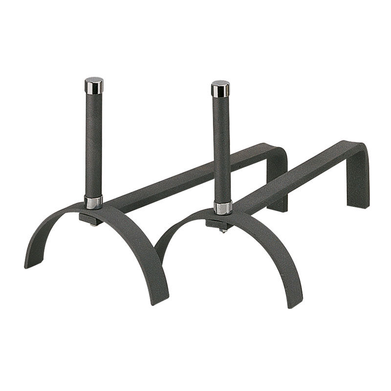 coppia di Alari con una struttura a tre gambe, due delle quali arcuate e una terza orizzontale. La struttura è robusta e serve a sostenere la legna e i ceppi nel camino, garantendo una migliore circolazione dell'aria per una combustione più efficiente e completa. Sollevano il fuoco da terra, migliorando l'ossigenazione e prevenendo la caduta dei tizzoni fuori dal focolare. Oltre a queste funzioni pratiche, gli alari hanno anche una funzione decorativa, abbellendo il caminetto con la loro lavorazione artigianale.